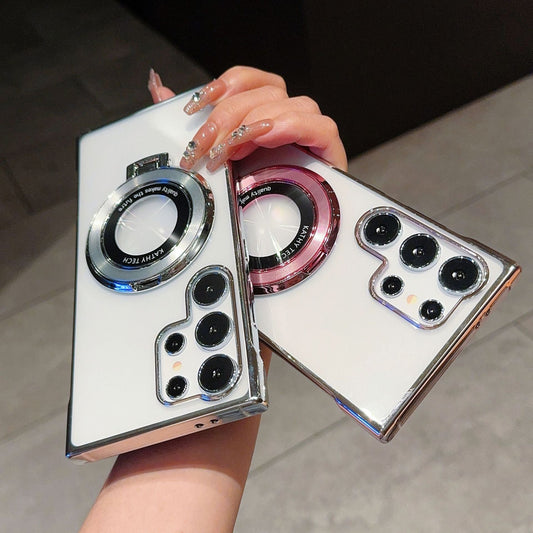 Casing ponsel Samsung tanpa bates magnetik elektroplating transparan