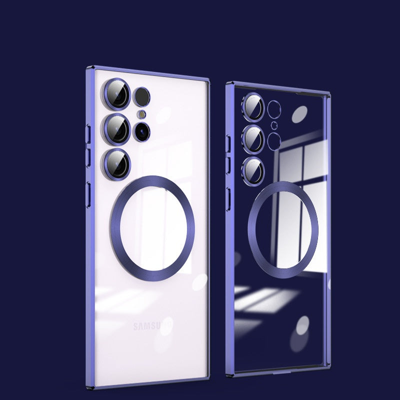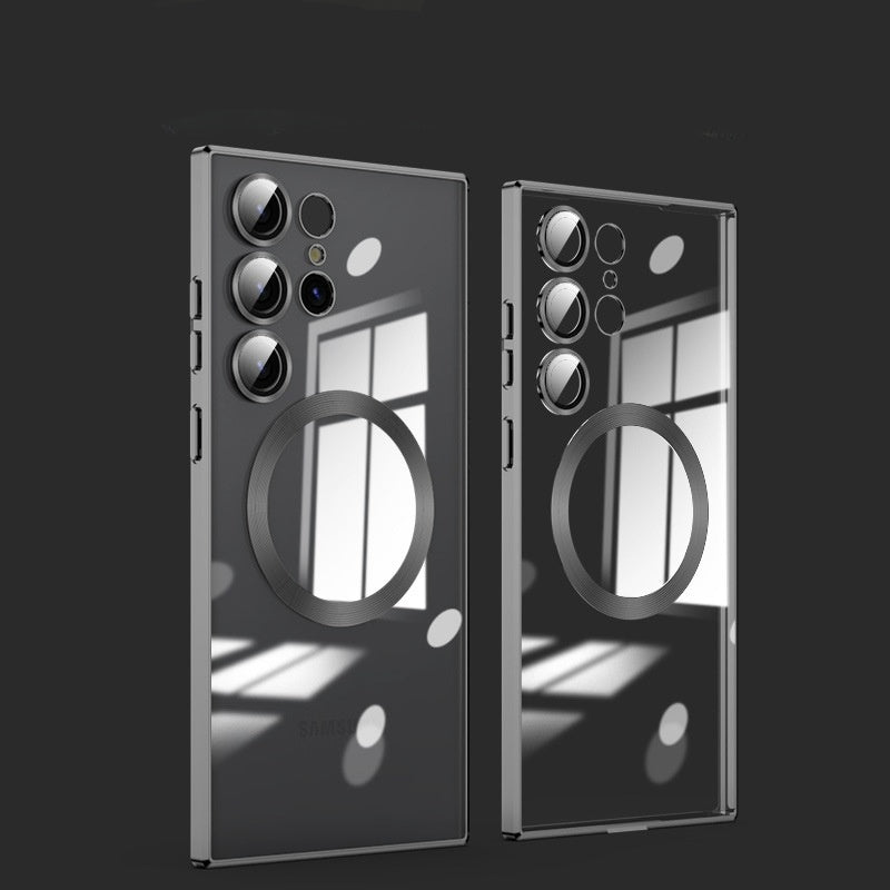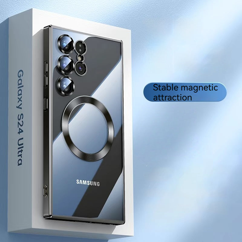 Electroplating magnetic transparent all-inclusive glass Samsung mobile phone case