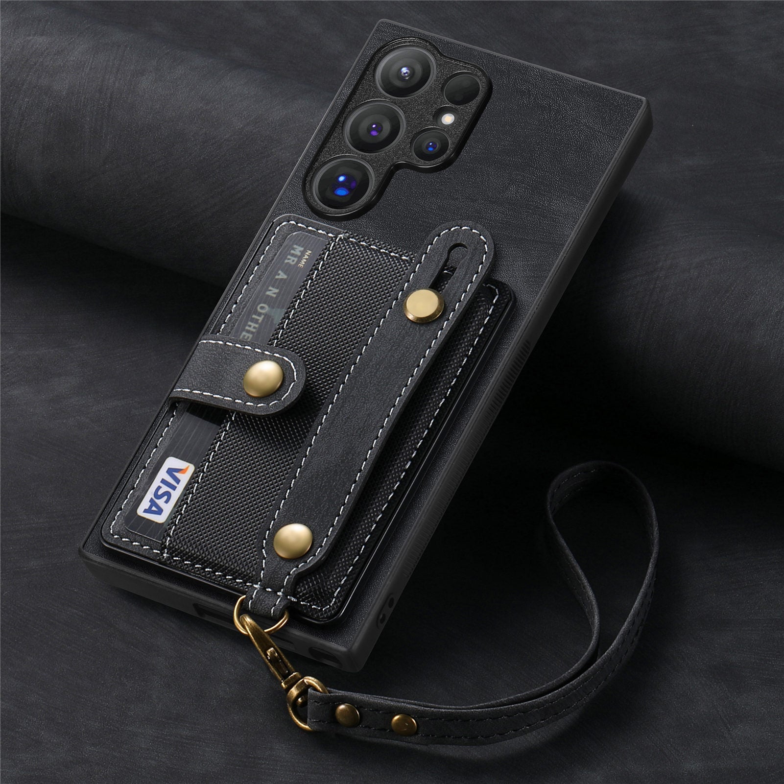 Wristband Lanyard Card Slot Leather Case Samsung Phone Case